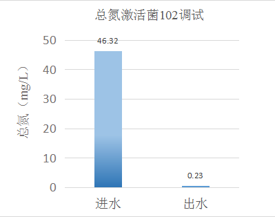 我司技術(shù)人員通過現(xiàn)場評估,發(fā)現(xiàn)生化系統(tǒng)總氮去除效率有限,生化溫度30℃,系統(tǒng)內(nèi)有效生物量不足,導(dǎo)致系統(tǒng)抗沖擊能力差,出水總氮難以達(dá)標(biāo)。通過技術(shù)人員現(xiàn)場投加復(fù)合碳源101和激活菌102,再配合現(xiàn)場生化系統(tǒng)運(yùn)行條件控制、優(yōu)化,達(dá)到如下效果: